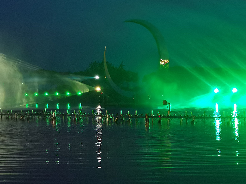 大縱湖旅游景區推出了東晉古城引云閣燈光藝術投影秀《印象·大縱湖》,將現代化的科技藝術思維與鹽城獨具特色的歷史文化、人文風情相結合,以裸眼3D效果和震撼的電影特效呈現一段全新的視覺盛宴,打造東晉水城光影新地標。